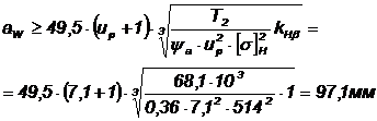 Ширина зубчастого вінця: шестерні b1 колеса b2 |