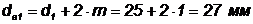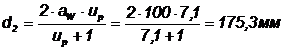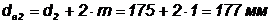 Діаметр кола вершин: шестерні da1 колеса da2 |