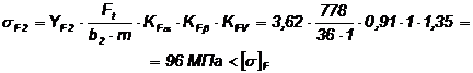 де КFβ = 1 - коефіцієнт нерівномірності розподілу навантаження по довжині зуба.