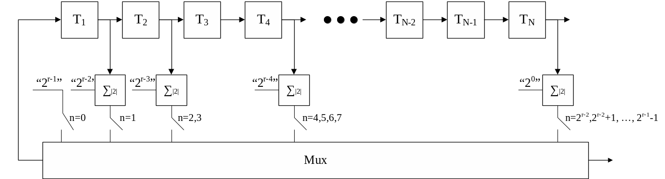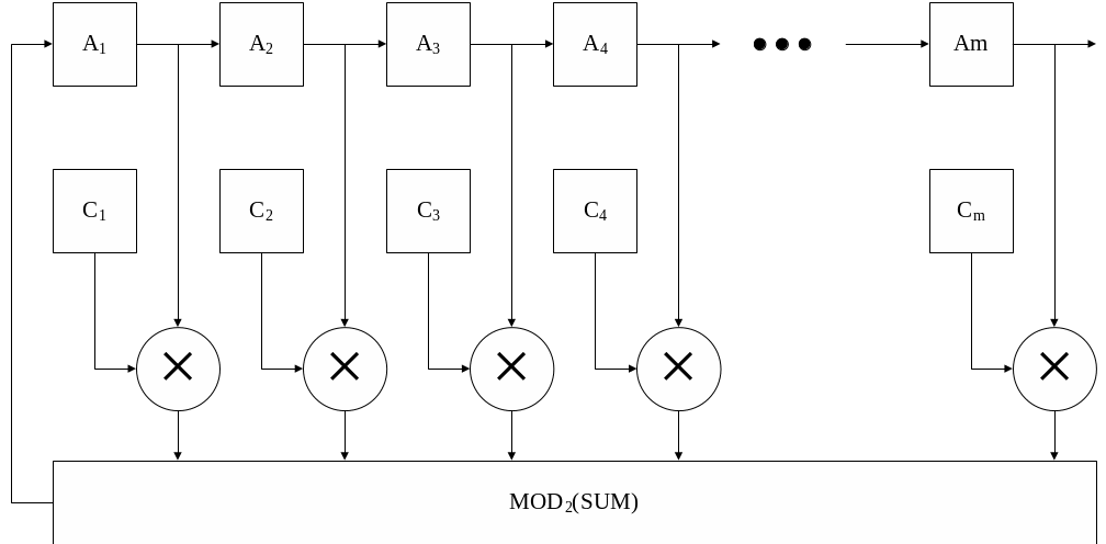 Ниже представлена схема формирования М-последовательности последовательности.