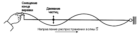 Движение частиц воды вдоль направления прохождения волн S похоже на движение веревки при смещении ее конца вверх-вниз. Хотя волна распространяется вдоль длины веревки, отдельные частицы веревки движутся только вверх и вниз перпендикулярно направлению распространения волны.