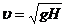 цунами определяется глубиной океана H и ускорением свободного падения g,
