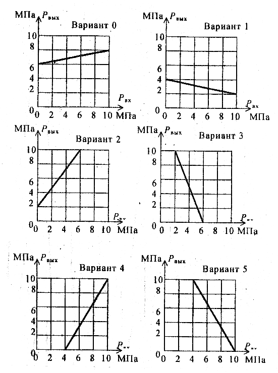 Рис. 5 Функциональные зависимости Рвых = f(Pвх) (варианты 05)