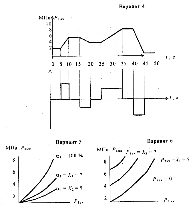 Для реализации функциональной зависимости, представленной на рис. 5, 6, по Вашему варианту определите параметры настройки элементов схемы (положение переключателя П, значение проводимости 2 и 4 регулируемых пневмосопротивлений D2 и D4), а также настройку или диапазон изменения входных переменных Р1, Р2 и Р3.