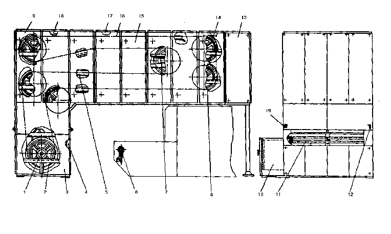 секции; 4 – тяговые втулочные цепи; 5 – дверцы; 6 – концевая секция; 7 – сис- тема кондиционирования воздуха; 8, 9 – посты управления; 10 – двухполочные