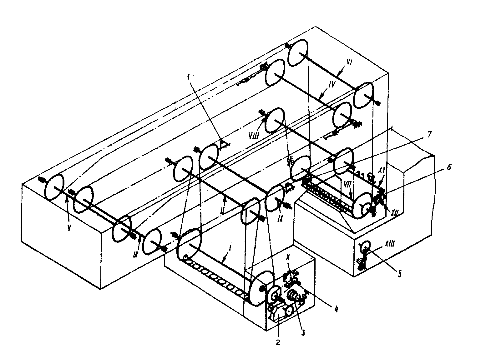 Рис. 5.6. Принципиальная кинематическая схема шкафа окончательной расстойки Т1-ХР2-3-120: