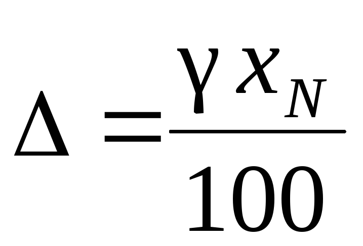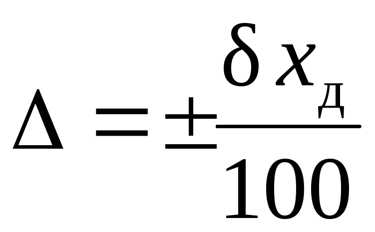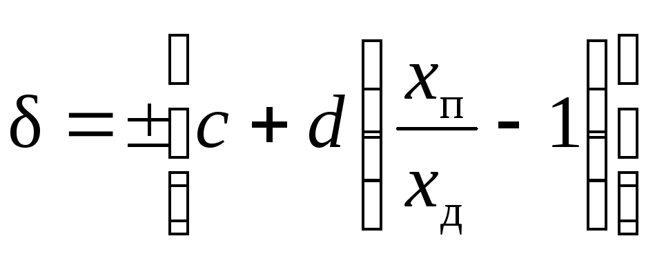 где xп – предельное значение шкалы прибора; xд – показание прибора; с и d – числитель и знаменатель условного обозначения класса точности.