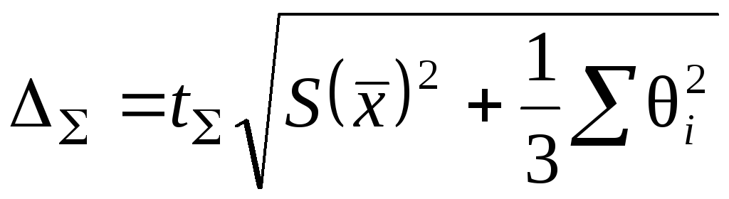 Если удовлетворяется первое неравенство, то пренебрегают систематической составляющей погрешности и за погрешность результата принимают случайную составляющую погрешности – доверительный интервал , накрывающий истинное значение с вероятностью .