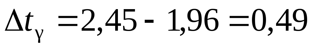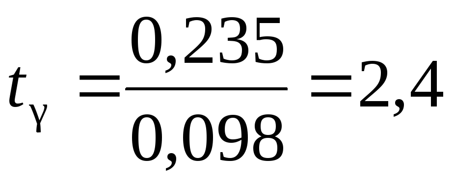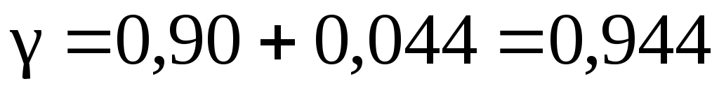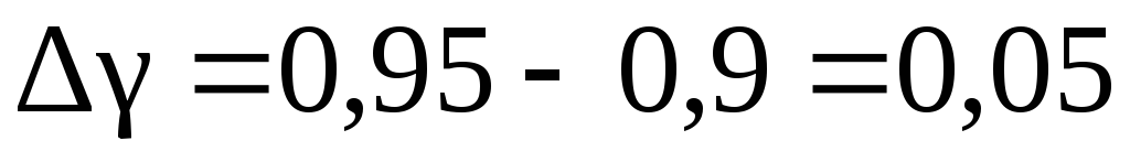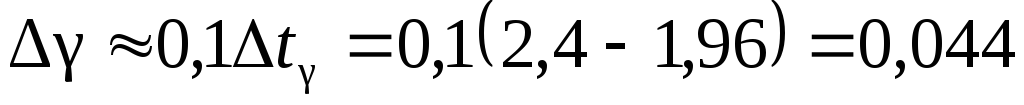 2) по табл. 2.8 распределения Стьюдента находим, что этому значению tγ соответствует γ, находящееся в интервале 0,90–0,95. Интерполируя, находим: