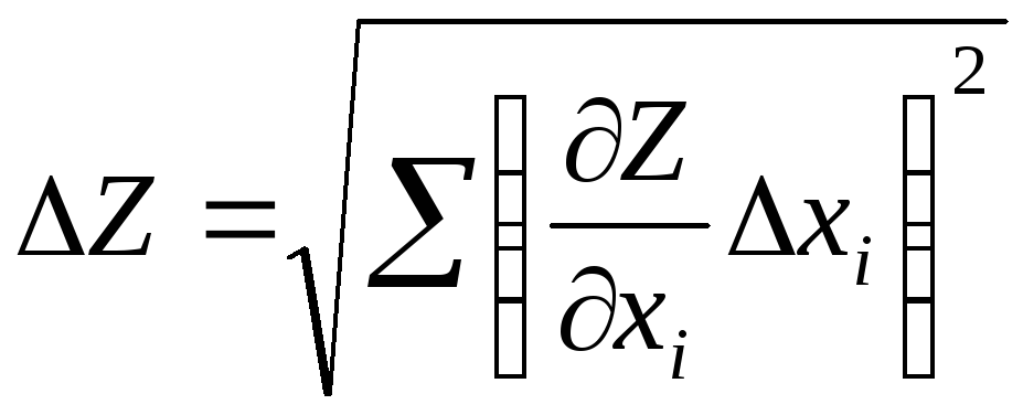 Погрешность любой косвенно измеряемой величины при технических измерениях, когда известны только предельные погрешности результатов прямых измерений хi (при некоррелированных хi), вычисляют по формуле