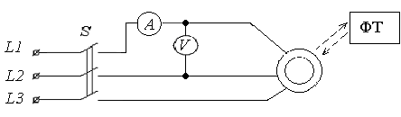 Рис. 5. Схема проведения опыта пробного включения двигателя на холостом ходу