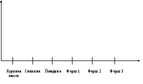 12. Органолептическая оценка готового продукта. Оценивается внешний вид, вкус, запах, цвет на разрезе, консистенция, структура, полученные данные вносят в табл. 5 (прил., разд. 5). На основании этой оценки делается окончательное заключение о влиянии количества добавляемой куриной массы на качество сосисок.