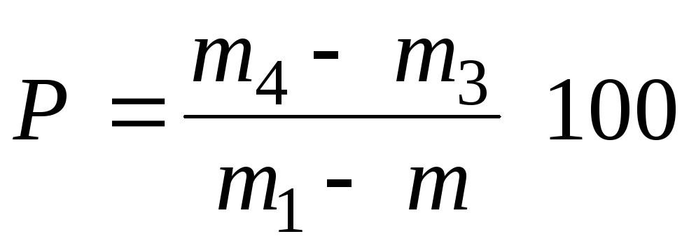 где Р – массовая доля составных частей продукта, %; m4 – масса составной части продукта в посуде, используемой при взвешивании, г; m3 – масса посуды, г; m1 – масса брутто, указанная на этикетке, г; m – масса тары, г.