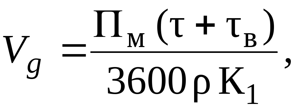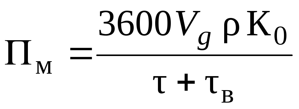 где τ – длительность замеса теста, с; τв – длительность вспомогательных операций, с; ρ – плотность теста, кг/м3; К1 – коэффициент заполнения месильной камеры, К1 = 0,4…0,5.