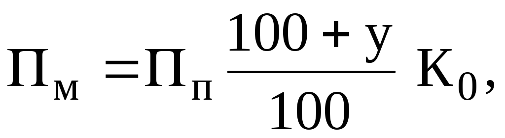 где Пп – производительность печи по горячему хлебу, кг/ч; y – упек к горячему хлебу, %; К0 – коэффициент, учитывающий возможные остановки на регулировку и очистку, К0 = 1,2...1,3.