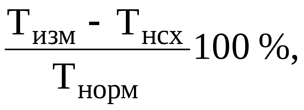 где – основная приведенная погрешность; Тизм – измеренное прибором значение температуры в заданной контрольной точке, °С; Тнсх – значение температуры в заданной контрольной точке по НСХ термопреобразователя, °С; Тнорм – нормирующее значение, равное разности максимальной и минимальной температур диапазона измеряемых прибором температур, °С.