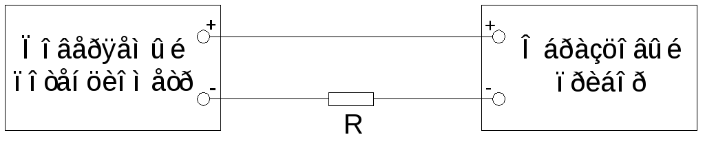 Поверяемый и образцовый приборы соединяются медными проводами. Сопротивление R устанавливают таким, чтобы оно совместно с выходным сопротивлением образцового прибора было равно 0,8–1,0 наибольшего значения сопротивления термоэлектри-ческого термометра, включая сопротивление линии связи.