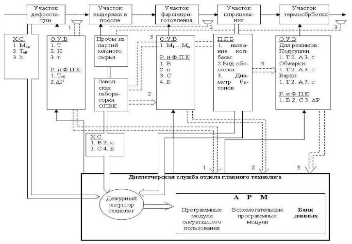 Рис. 3.1. Схема организации информационных потоков на предприятии для управления технологическими процессами колбасного производства