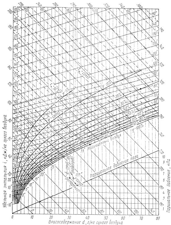 Рис. 2. Диаграмма Рамзина для влажного воздуха (d = 1000x)