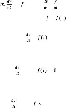 Во всех пяти примерах пришли к уравнениям, которые содержат неизвестную функцию (скорость, как функция времени), а также ее производные. Как известно, такие уравнения называются дифференциальными, ибо операция отыскания производной называется дифференцированием (более того, обыкновенными дифференциальными уравнениями (ОДУ) – в уравнение входит функция одного аргумента). Решив эти ОДУ, т.е. найдя функции, им удовлетворяющие, установим, как движется тело в том или ином случае.