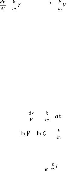 Действительно, подставляя t = 0 в (4) и используя (5), придем к равенству C = V0. Окончательный ответ (скорость как функцию времени в данном конкретном случае) получаем в виде