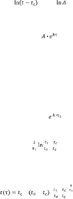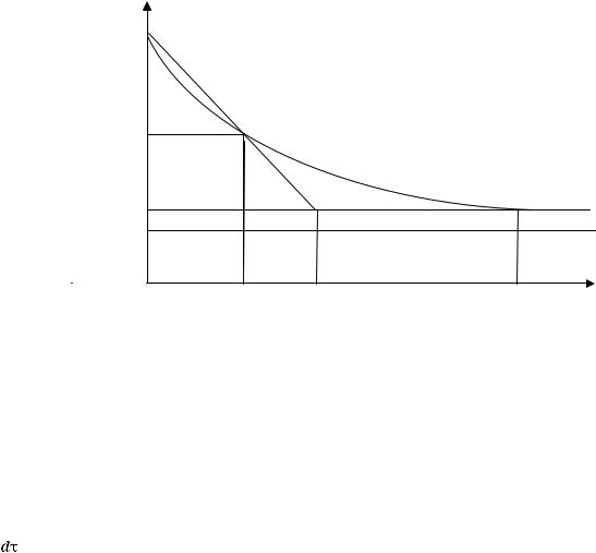 Уравнение (1) – обыкновенное дифференциальное уравнение первого порядка с разделяющимися переменными. Оно аналогично дифференциальному уравнению, описывающему бесконечное замедление тела, движущегося в среде с сопротивлением, пропорциональным скорости. Пусть τ – время охлаждения. Тогда, разделяя переменные, получим: