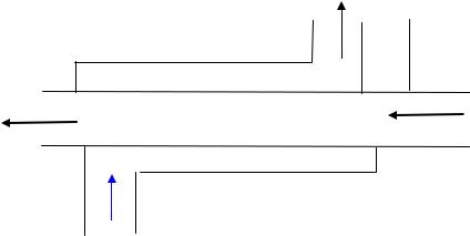 1 – одиночная труба относительно малого диаметра, расположенная внутри трубы большого диаметра 2; один теплоноситель течет во внутренней трубе (Т2), другой – в кольцевом пространстве 2 между двумя трубами (Т1); Т – температура,