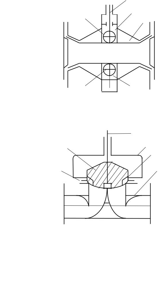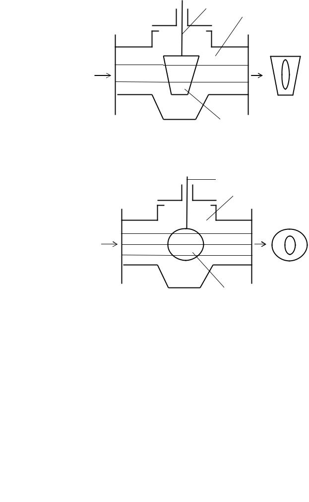 В зависимости от направления управляющего механического воздействия и перемещению подвижного элемента запорного устройства РО подразделяются на: клапаны - управляющее воздействие и перемещение запорного устройства имеют возвратно-поступа- тельный характер; краны - управляющее воздействие и перемещение запорного устройства имеют поворотный характер; вентили - управляющее воздействие имеет вращательный характер, а запорное устройство совершает поступательное движение; задвижки (заслонки)