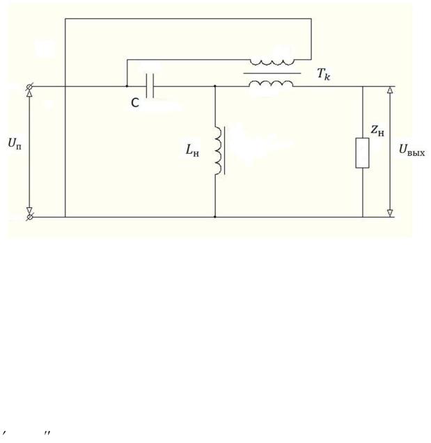 Последовательно соединѐнные С (конденсатор) и катушка Lн с насыщенным магнитным сердечником (нелинейный дроссель) образуют простейший стабилизатор. Стабилизированное выходное напряжение снимается с нелинейного дросселя Lн, сопротивление которого для нормальной работы должно быть намного меньше сопротивления нагрузки zн.