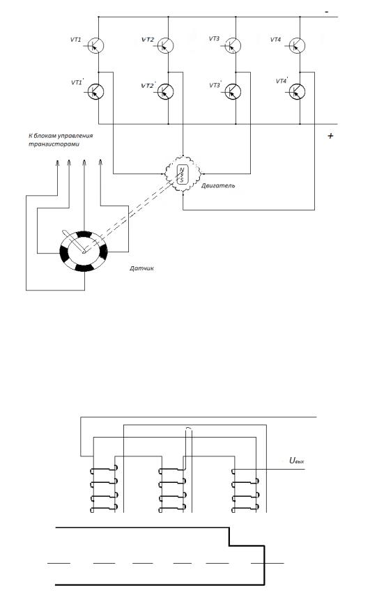 Машины постоянного тока, как правило, имеют более высокое технико-экономические показатели по сравнению с машинами переменного тока, но у них есть существенный недостаток – наличие щѐток и коллектора. Для исключения этого недостатка можно использовать полупроводниковый коммутатор. Такие двигатели с коммутатором получили название вентильных. Якорь у них неподвижен, а ротор представляет собой постоянный магнит (рис. 31).