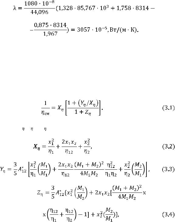 Для расчета вязкости бинарных неполярных газовых смесей молекулярно-кинетическая теория предлагает следующую зависимость [1]:
