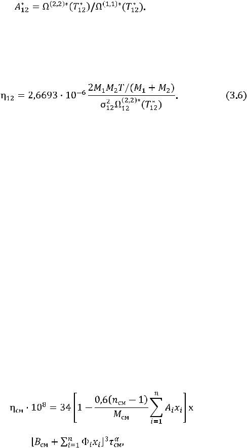 В расчетах пользуются величиной вязкости гипотетического газа, молекулы которого имеют молекулярную массу, равную 2M1M2/(M1+M2), и взаимодействуют по потенциальной кривой, определяемой параметрами взаимодействия ζ12 и ε12,