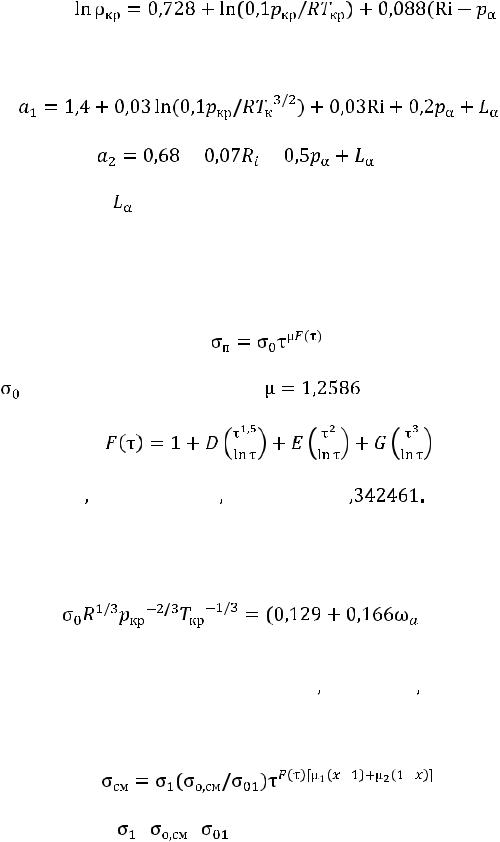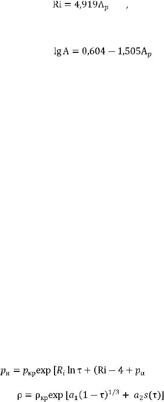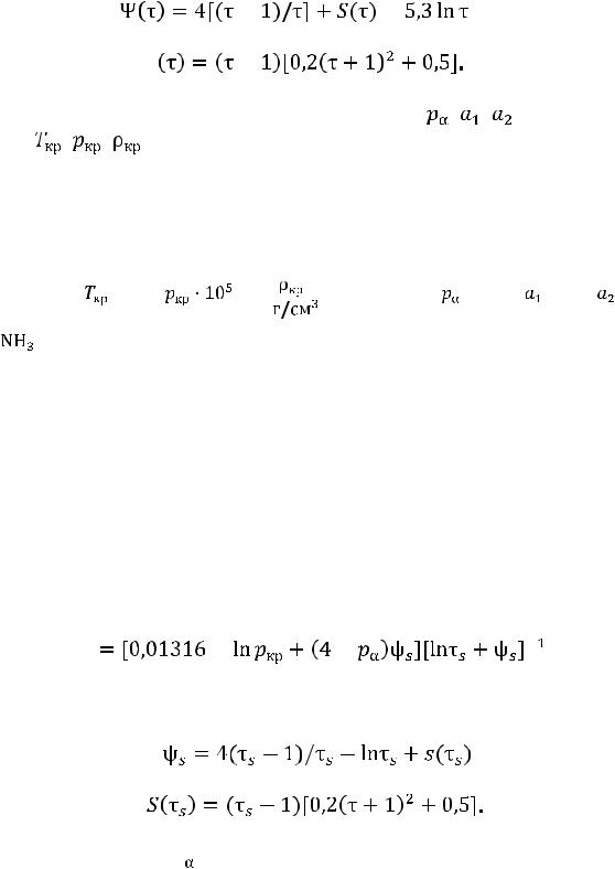 Для зависимости давления насыщенного пара и плотности насыщенной жидкости от температуры И.И. Перельштейн рекомендует уравнения [2]