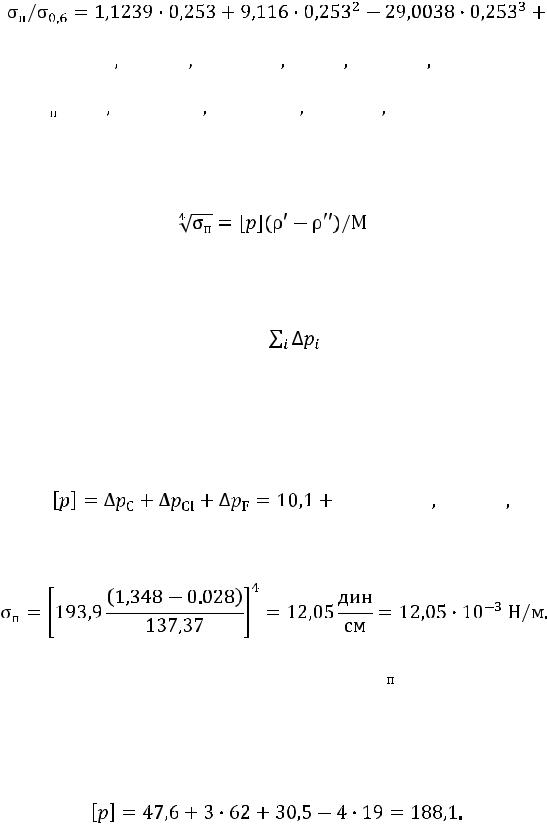 Зависимость для определения поверхностного натяжения, рекомендуемая в литературе, имеет вид