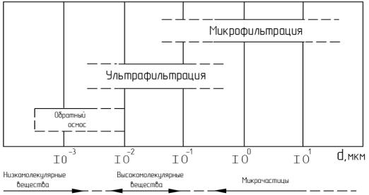 Рис. 2.26. Области применения мембранных методов разделения жидких веществ