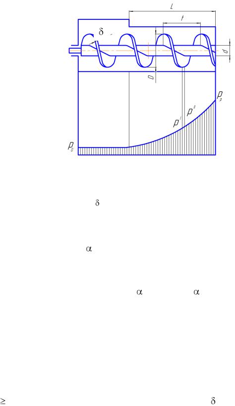 Рис. 19. Схема шнекового нагнетателя и эпюра давлений: