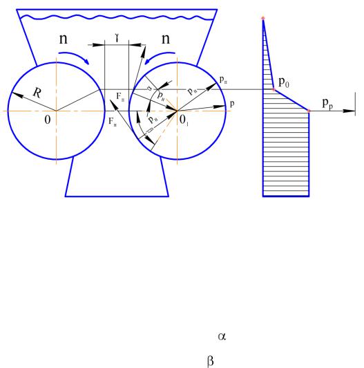 Рис. 20. Расчетная схема валкового нагнетателя и эпюра давлений