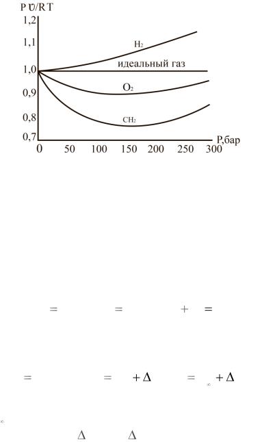 ного газа справедлив закон Бойля–Мариотта: во сколько раз возрастает давление, во столько раз уменьшится объем. У водорода, например, объем уменьшается медленнее, чем растет давление, а у метана – наоборот.