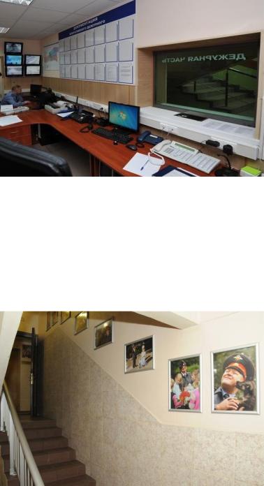 Служебные кабинеты необходимо оформлять наглядными средствами информирования, соответствующими их предназначению. Например, в помещении дежурной части, где сотрудники находятся круглосуточно, должна быть карта (план) района с выделенными основными административными и культурными центрами, наиболее важными объектами. Целесообразно наглядно оформить стенды, отражающие права и обязанности дежурного наряда.