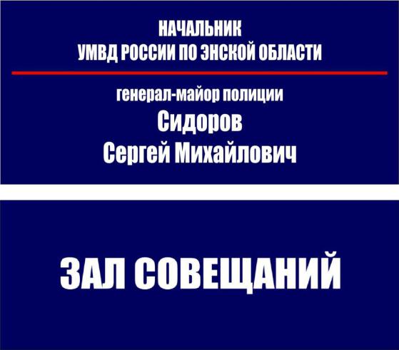 1.Для отдельного кабинета начальника или его заместителя – должность, специальное звание, фамилия, имя, отчество.