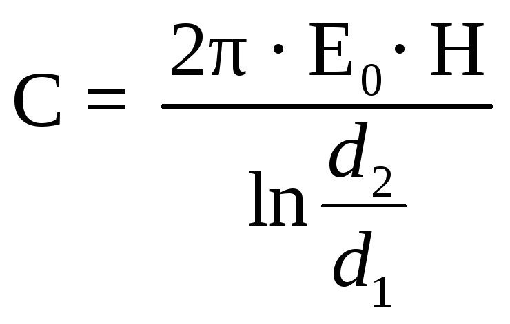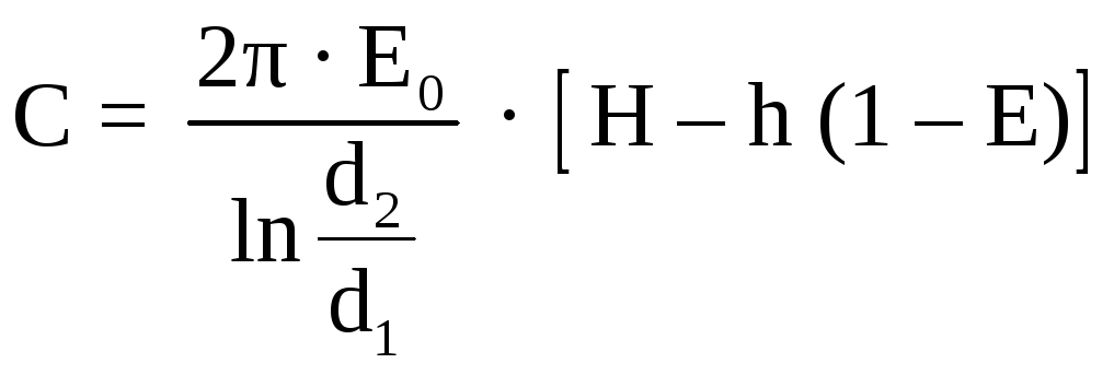 Емкостный ЧЭ на рисунке 2.37 (б) представляет собой цилиндрический конденсатор, состоящий из двух коаксиальных цилиндров, а для вычисления емкости используется формула: