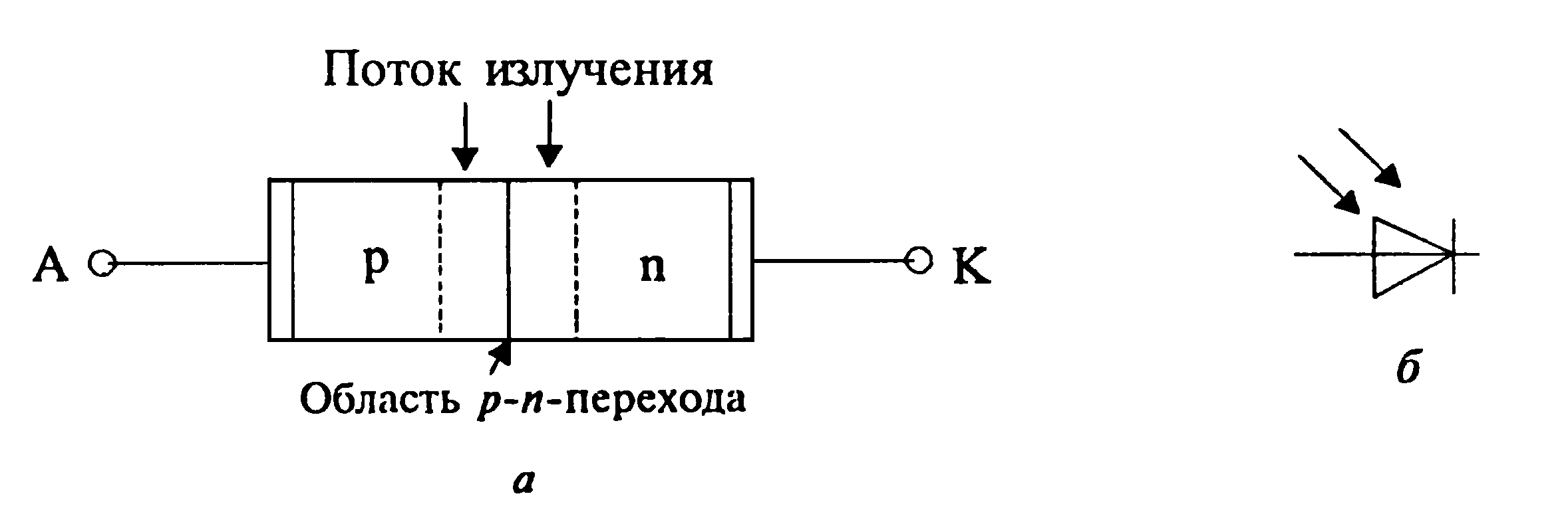 Рис. 2.48. Структура фотодиода (а) и его УГО (б)
