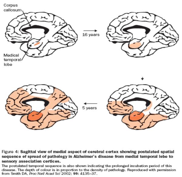 Последовательность распространения изменений в височной доле при БА