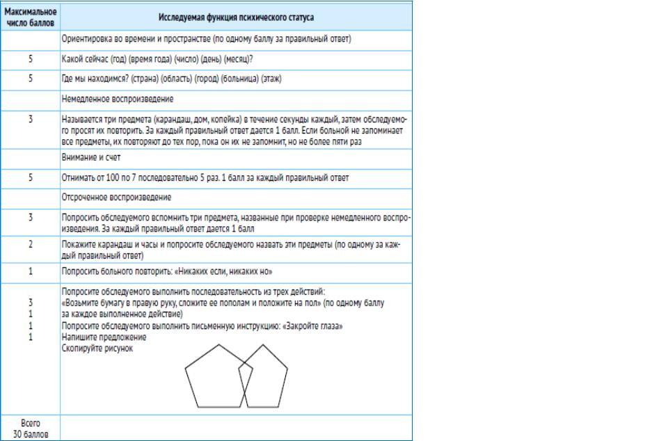 Краткая шкала оценки психического статуса – (Mini-Mental State Examination, MMSE)