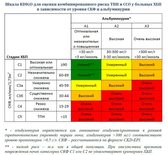 снижение скорости клубочковой фильтрации (СКФ) < 60 мл/мин/1,73 кв.м в течение трех и более месяцев, вне зависимости от наличия других признаков повреждения почек.
