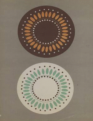 Усложнение программного материала идет за счет более сложной композиции и введения новых изобразительных элементов в узор. Кроме точек и мазков, дети учатся использовать в узоре круги и кольца, с приемами рисования которых они знакомились еще в младшей группе.