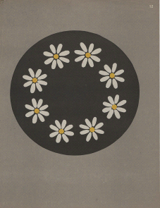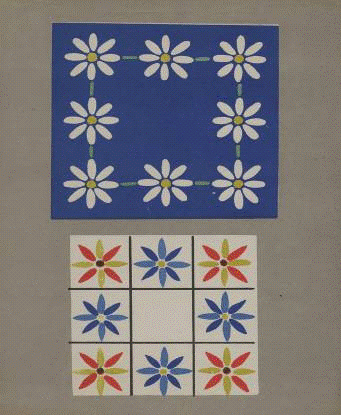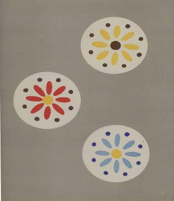 В декоративном рисовании изображение этих форм несколько меняется: они меньшего размера, при рисовании должны все соответствовать друг другу по величине и, кроме того, они не связаны с образом предмета, что также делает их изображение более трудным для ребенка. Кроме полоски, дети учатся располагать узор на других формах - квадрате, круге. Эти формы требуют другой композиции в узоре. Естественно, что использовать простой линейный повтор здесь нельзя, так как у квадрата есть стороны, углы, центр; у круга - край и центр.
