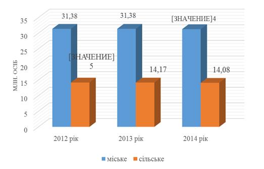 Рис. 2.3. Динаміка міського і сільського населення протягом 2012-2014 років.