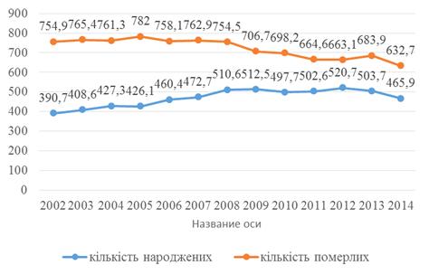 народжуваність. Так у 2002 році в Україні померло 754.9 тис. осіб, що майже у