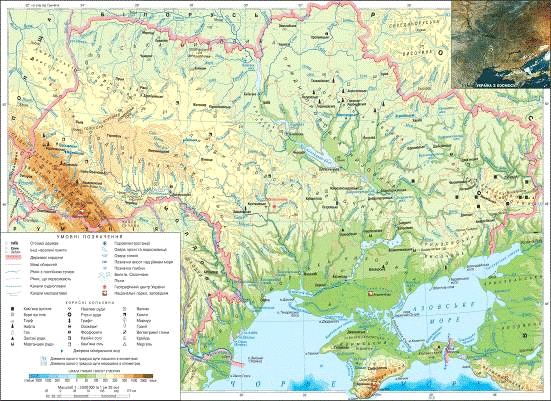 Рис.1 Физическая карта Украины